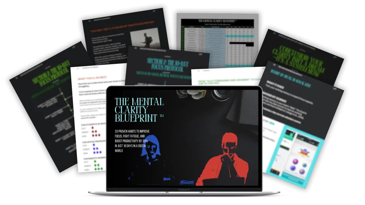 The Mental Clarity Blueprint is your no-fluff, science-backed playbook for rebuilding focus, regaining energy, and finally finishing what matters—starting in just 10 minutes a day.
